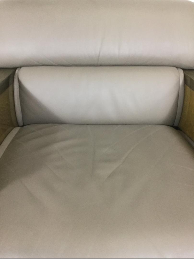 - あり黄ばみ・変色が広い範囲にうっすらある、または濃い黄ばみ・変色が一部ある。(例:三人用ソファ、二人用ソファ、一人用ソファの場合、背もたれ、肘かけ、座面等、 センターテーブルの場合、天板、脚にある。)
