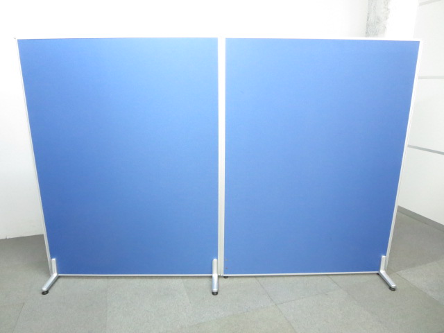 ■ローパーティション2枚セット ■W2400(W1200・2枚連結)×H1600mm【安定脚付き】 ■ブルー・クロス張り【2連衝立パネル】- 川崎店