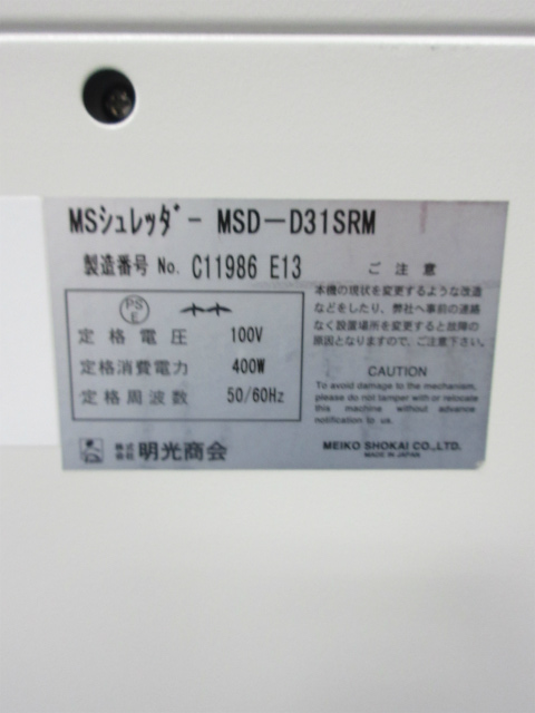 【中古】 MSD-D31SRM 明光商会 シュレッダー 204621
