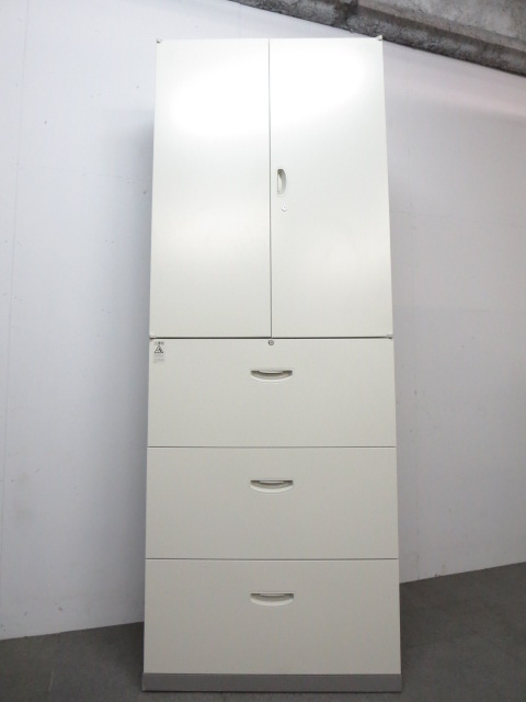 【幅800×奥行き400だから、狭いスペースにも置ける】両開き+3段ラテラル書庫セット- 川崎店