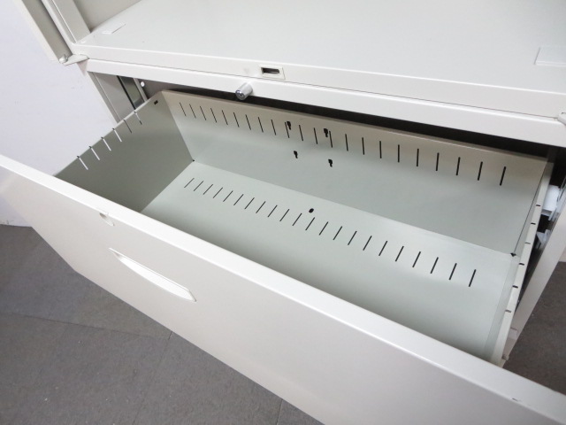 - 一部不具合ありそ引出の開閉不可、施錠不可、棚板無しといったの書庫の本来の効用を果たすための機能以外の一部が使用不可(例、扉、引出の開閉がしづらいなどがある。 )