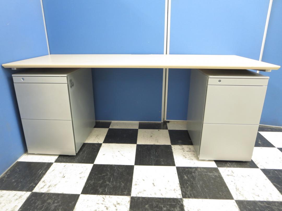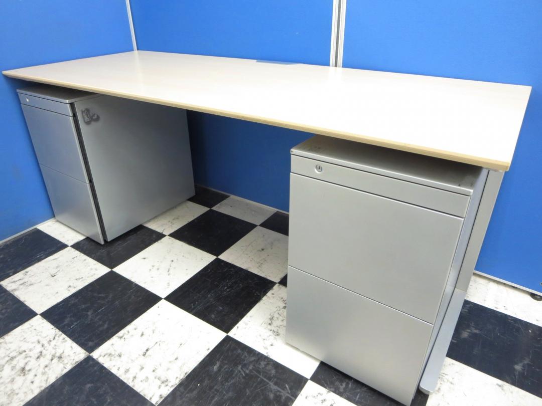 定番シリーズ【プロユニットシリーズ】の平机+ワゴン2つの疑似両袖机です!