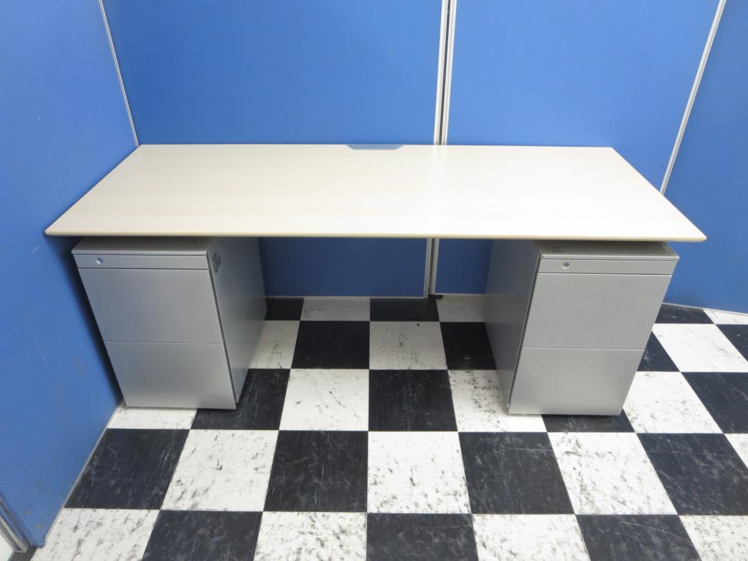 【できるオトコの広々デスク!】オカムラ製 プロユニット 疑似両袖机セット 暖かみもあるナチュラルカラー!【中古オフィス家具】- 埼玉本店