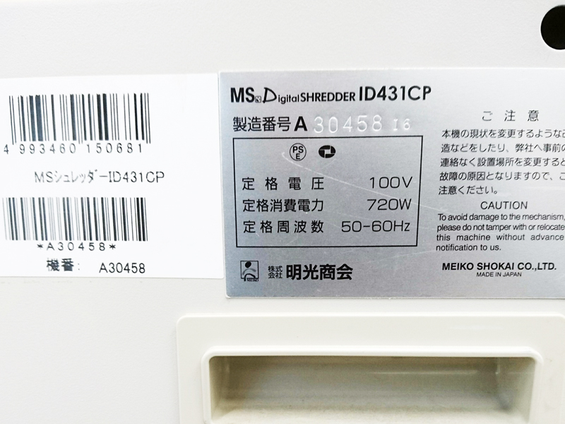 【中古】 MS-431CP 明光商会 シュレッダー 204845