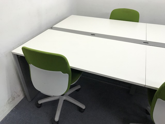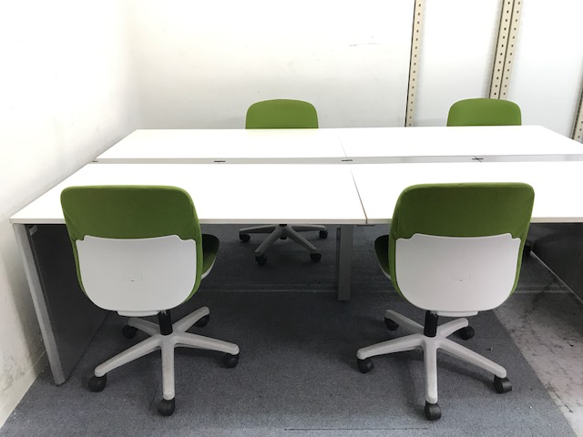 【ホワイト】【セット商品!】フリーアドレスデスク+チェア4脚|可愛いエニーザチェアとのセット商品です!- 大阪・堺店