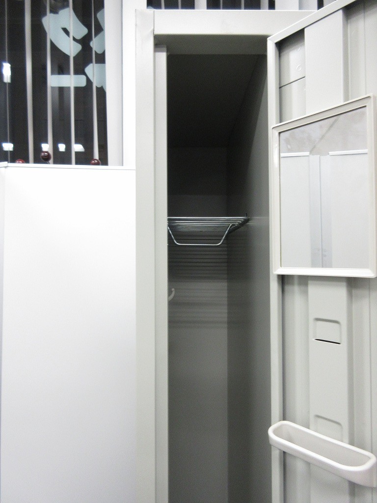 上下2段に別れている6人用ロッカーとは違い、コート等もかける事が出来るので
