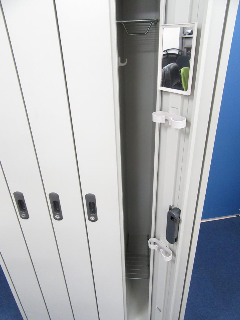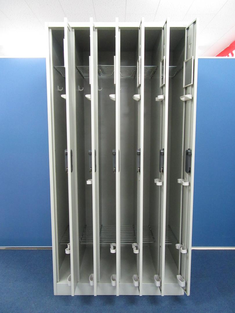 珍しい縦型のタイプは、通常のロッカーに比べて1人当たりの幅を短くすることにより、