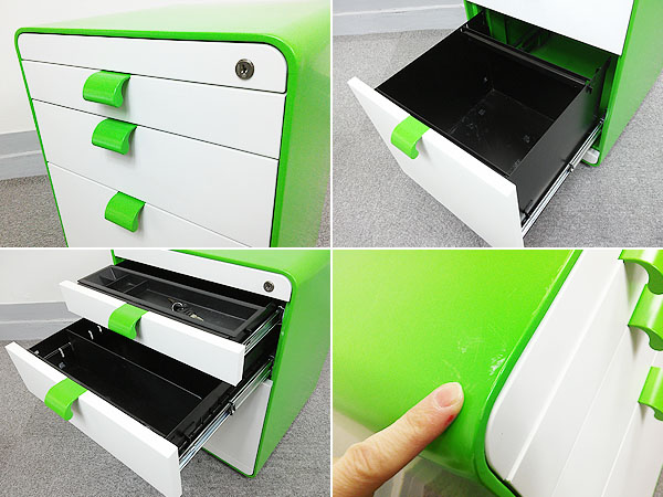 - 一部不具合ありその脇机・ワゴンの本来の効用を果たすための機能以外の一部が使用不可な状態。(例、引出が開閉しづらい、 キャスターロック機能使用不可、ラッチ不良 等がある。)