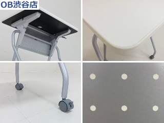 - 一部不具合あり天板歪み、アジャスター無し、キャスター使用不可ようなそのテーブルの本来の効用を果たすための機能以外の一部が使用不可な状態。(例、キャスターロッ ク機能使用不可、棚板無し等がある。)