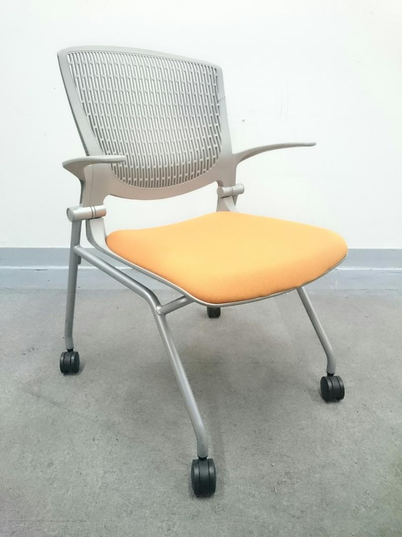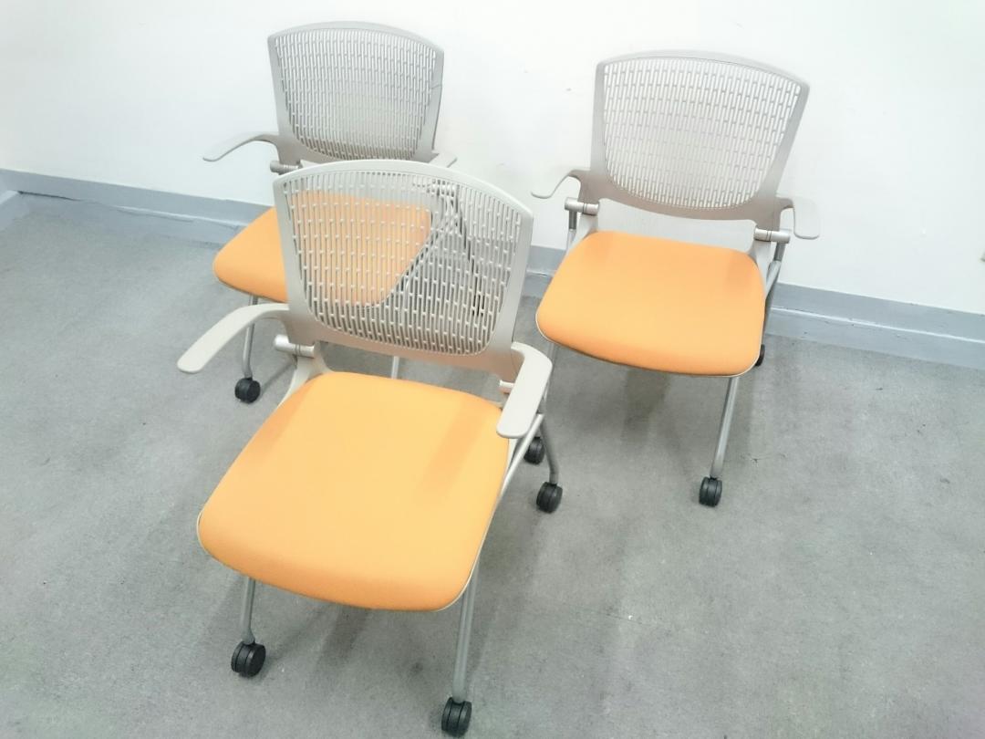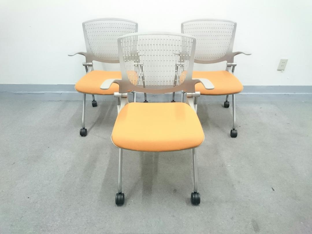 【KS】[状態良好]岡村製作所 会議用椅子 ミーティングチェア グラータ オレンジ[三脚セット]サーキュラーバリューCO2削減量の算出について