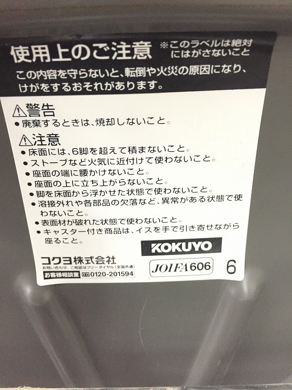 国内有名メーカーコクヨ製のスタッキングチェアの入荷です!