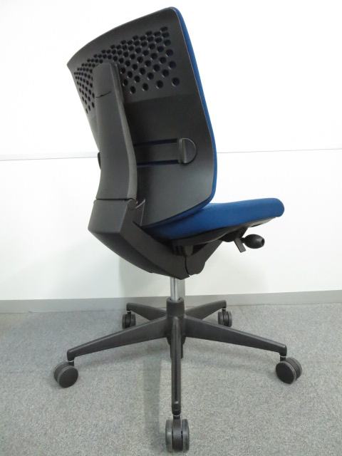 コクヨ ウィザード2 ローバック プルシアンブルー×ブラックフレーム 肘無しモデル コートハンガー付き 定番の使いやすいチェア オフィスバスターズ梅田本店