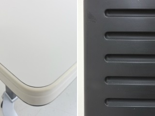 - 一部不具合あり天板歪み、アジャスター無し、キャスター使用不可ようなそのテーブルの本来の効用を果たすための機能以外の一部が使用不可な状態。(例、キャスターロッ ク機能使用不可、棚板無し等がある。)