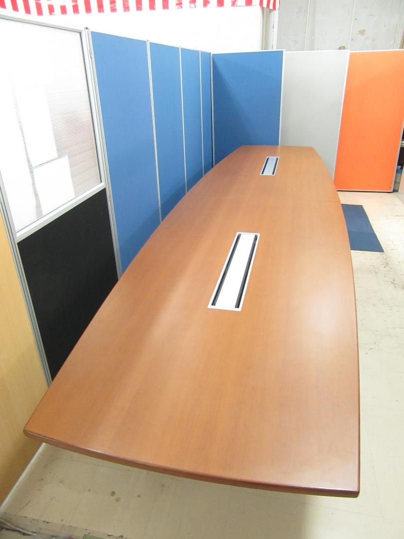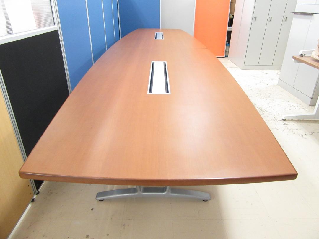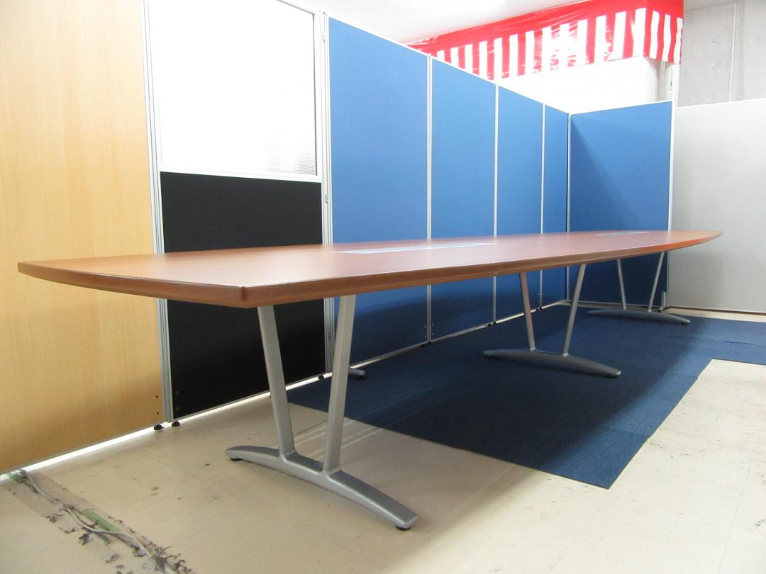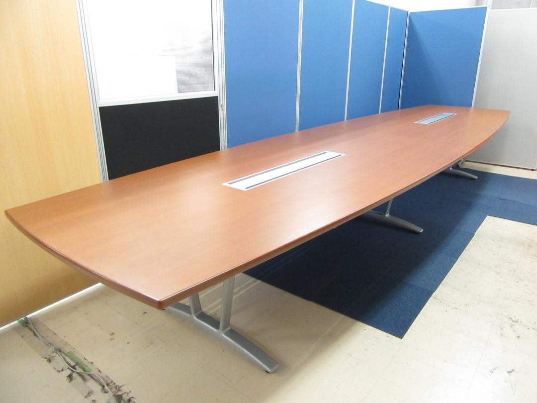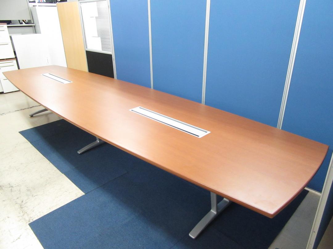 [即れ必須!?]コクヨ(KOKUYO) 会議テーブル WT-110シリーズ■横幅4800mmの大型会議テーブルが堂々入荷!!■ボート形/メラミン化粧天板/ミディアムメープル/フラットシルバー脚/配線付き[2013年製][新品M価55万円クラス!!]- 足立・葛飾店