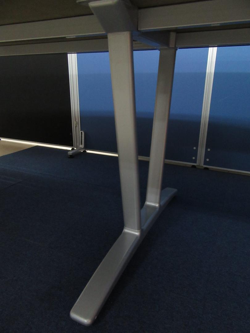 2本支柱のV字フレーム構造とアルミダイカストの天板受けにより、テーブル強度が向上。