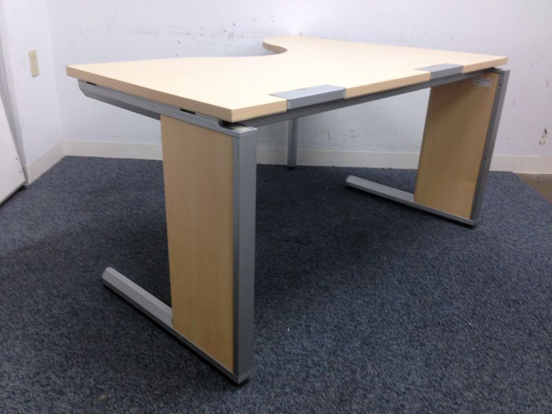 【限定1台の入荷!】【左ラウンド】書類を広げながらPCワークもらくらくなラウンドデスク|幕板無し【フレスコデスクシステム】【脚部凹み/天板キズ有】- 名古屋千種店
