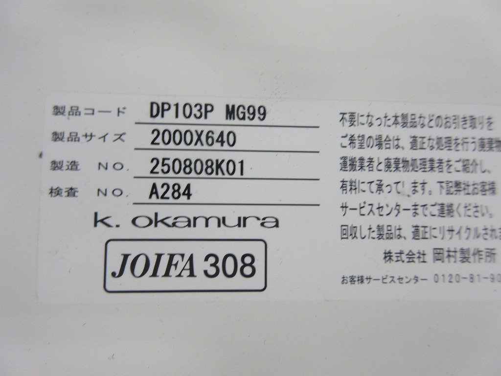 【中古】 プロユニットフリーウェイ DP103P MG99 オカムラ/okamura デスクその他 205246