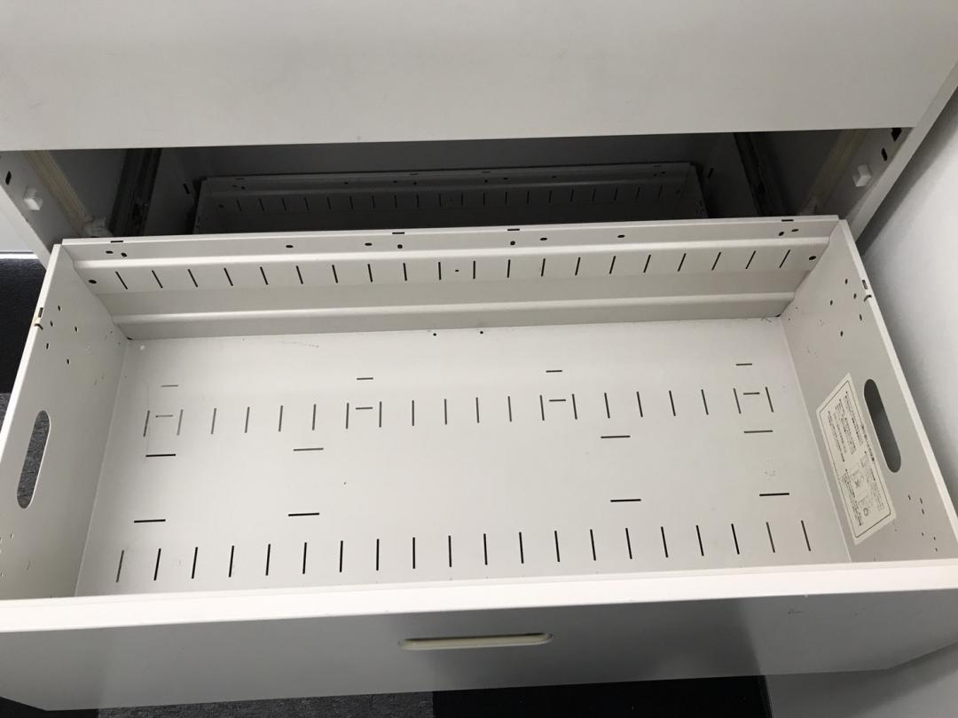 - 一部不具合ありそ引出の開閉不可、施錠不可、棚板無しといったの書庫の本来の効用を果たすための機能以外の一部が使用不可(例、扉、引出の開閉がしづらいなどがある。 )