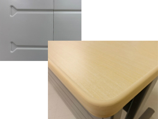 - あり黄ばみ・変色が広い範囲にうっすらある、または濃い黄ばみ・変色が一部ある。(例、天板、幕板、棚板、サイド部分、脚部等にある。)