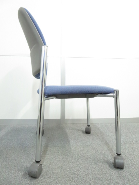 【スムーズに動かせるキャスター付!】■イトーキ スタッキングチェア ブルー ■クッション性が良く長時間の会議にもオススメ!- 川崎店