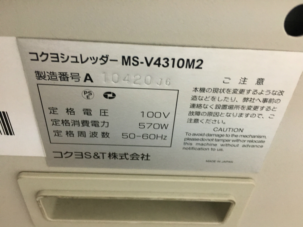 1台限り!激レア!【国内製】シュレッダーが入荷しました!MS-V4310M2【RP】- 品川・三田店