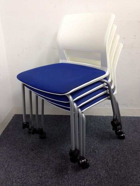 【重ねて収納可能!スペースの削減にお勧めなスタッキングチェア!】■コクヨ(KOKUYO)製 CK-160 スタッキングチェア ミーテイングチェア ■背カバーあり ■ブルー×ホワイトシェル