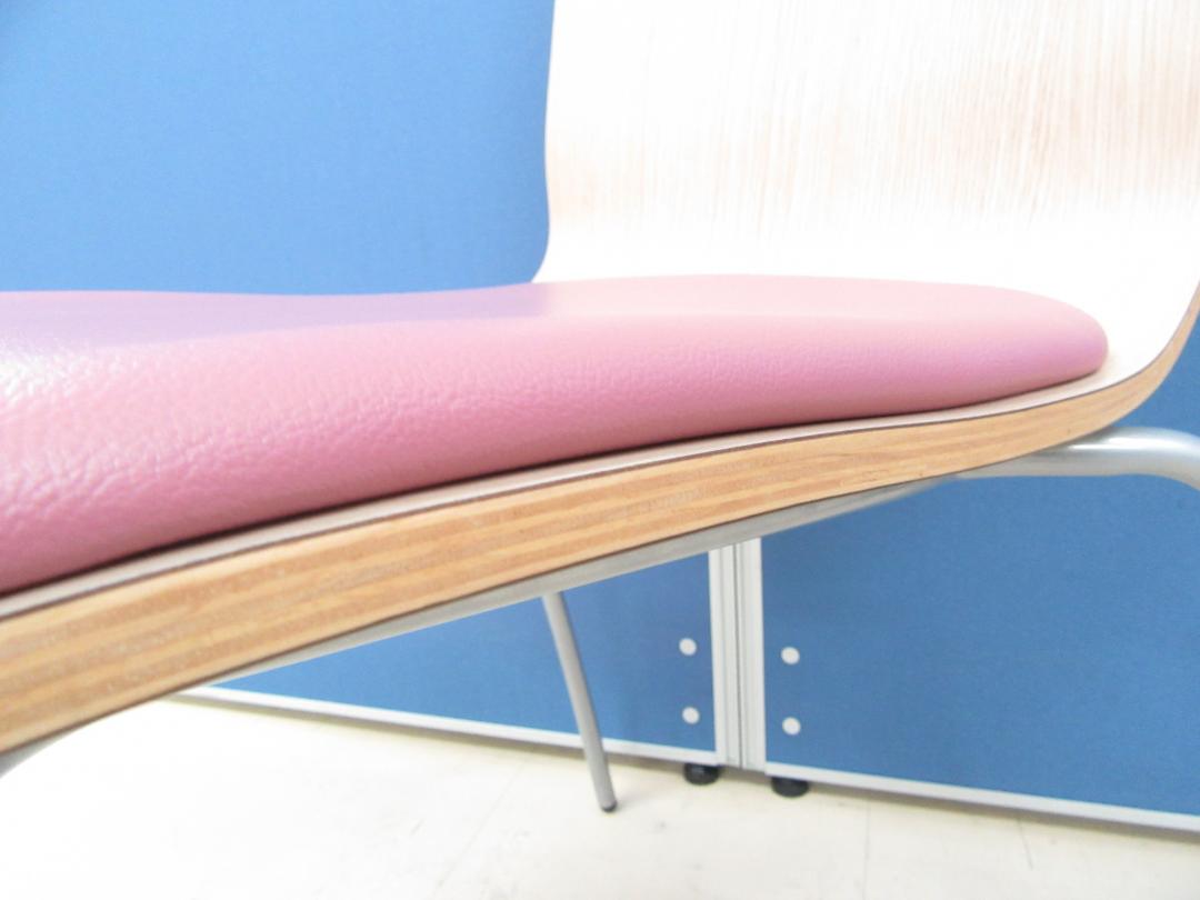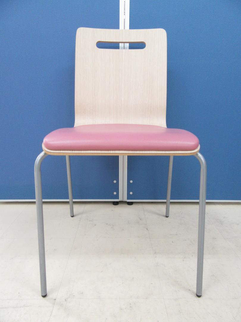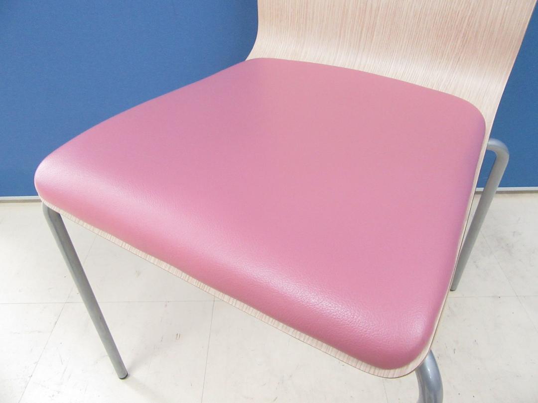 [16脚入荷!!]スタッキングチェア キーノ2 ナチュラル(木目)×ピンク■ビニールレザーでお手入れ簡単!!食堂や休憩室のチェアとしておすすめです!![フードコートチェア]【B】- 足立・葛飾店