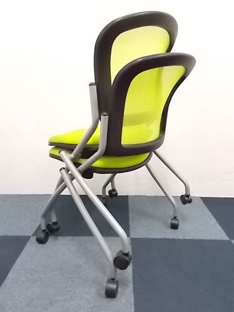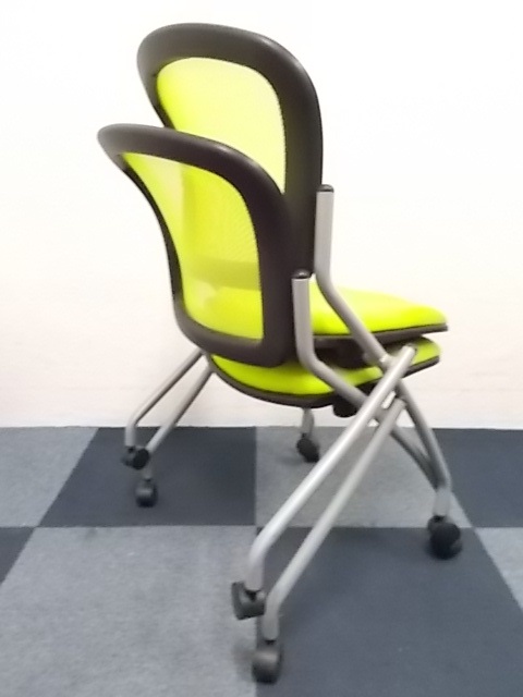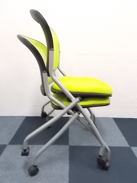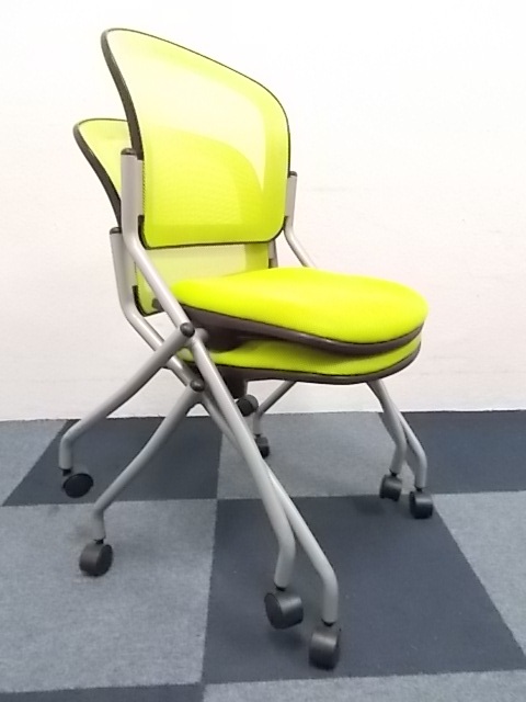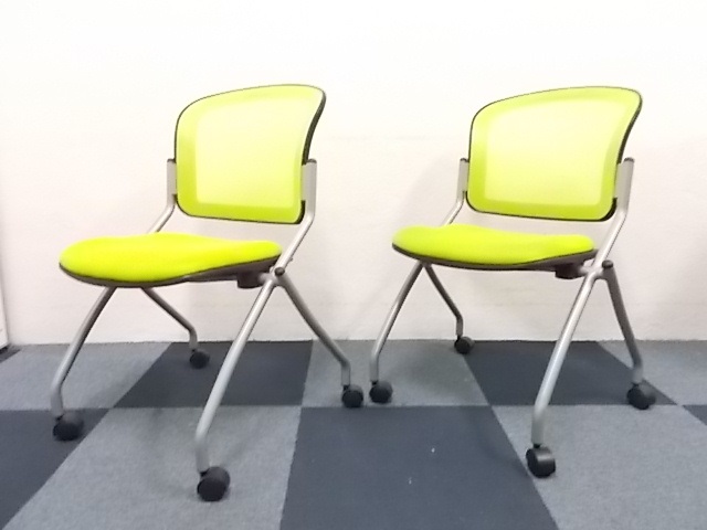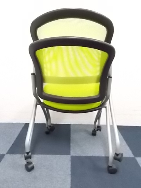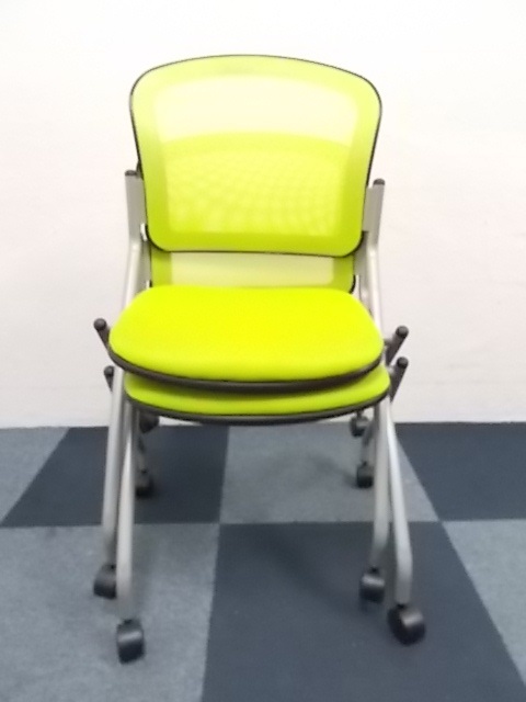 【2脚セット商品】スタッキングチェア ■背もたれ座面ともにメッシュ素材!!蛍光色のグリーンカラー専門業者によりクリーニング済み- 在庫数