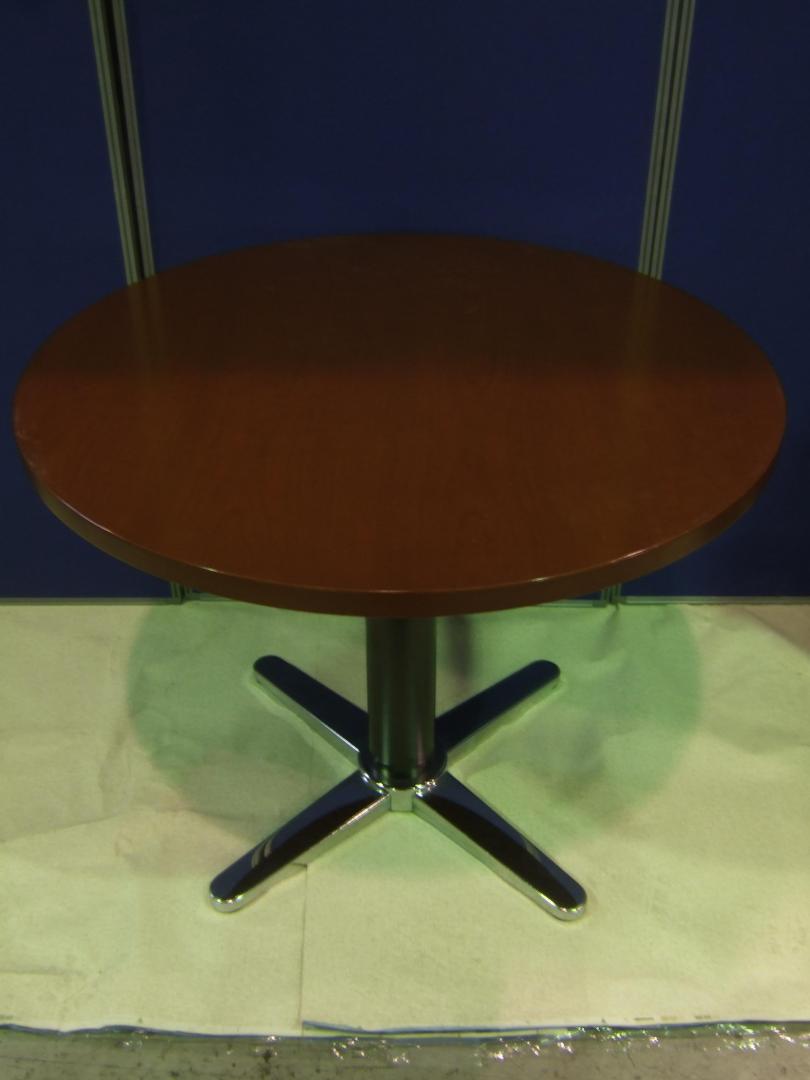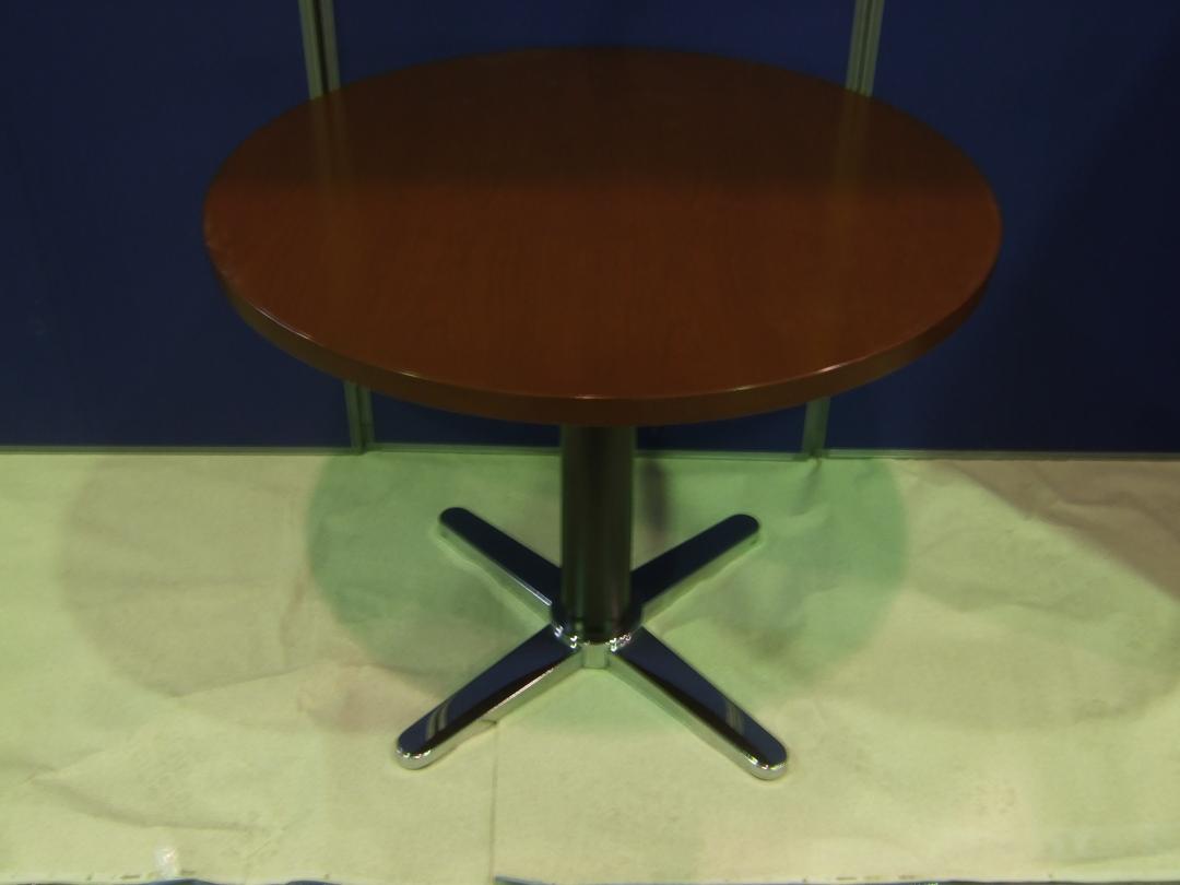 【関東倉庫在庫】木製天板の丸テーブル、X字脚! ※ややキズあり【A00490293】- 全店共通商品