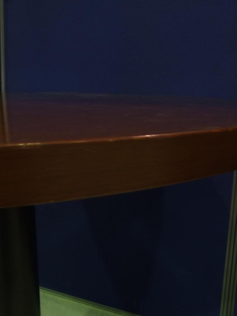 - かなり強い濃い黄ばみ・変色が商品全体にある。(例、天板、幕板、棚板、サイド部分、脚部等にある。)