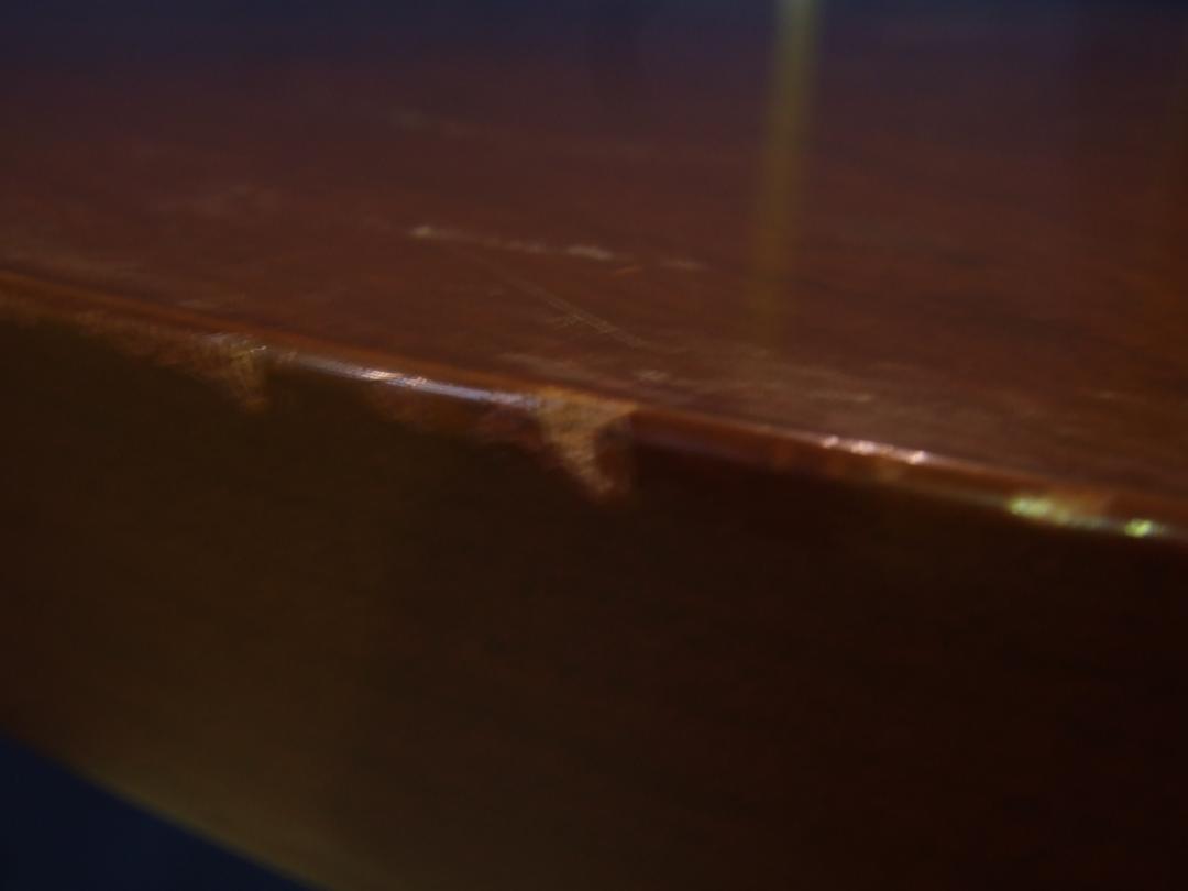 - 目立つ箇所あり傷・凹みが多数、深い傷・凹みが一部ある。(例、天板、幕板、棚板、サイド部分、脚部等にある。)