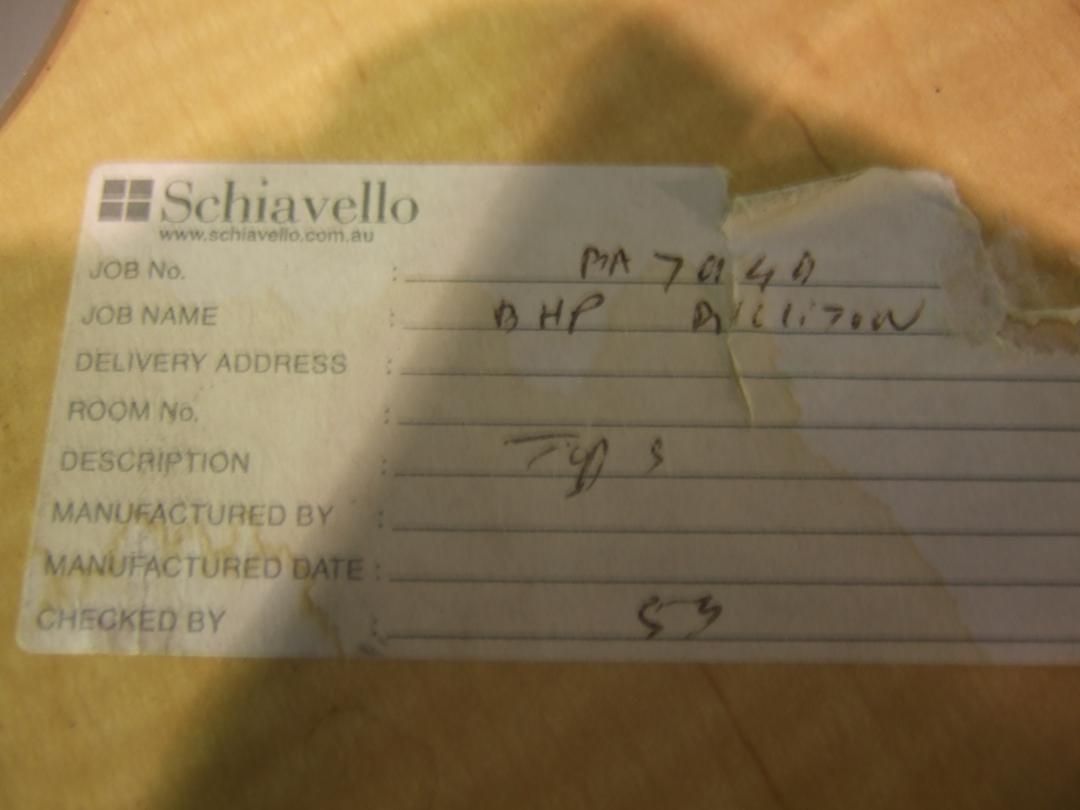 - かなり強い濃い黄ばみ・変色が商品全体にある。(例、天板、幕板、棚板、サイド部分、脚部等にある。)