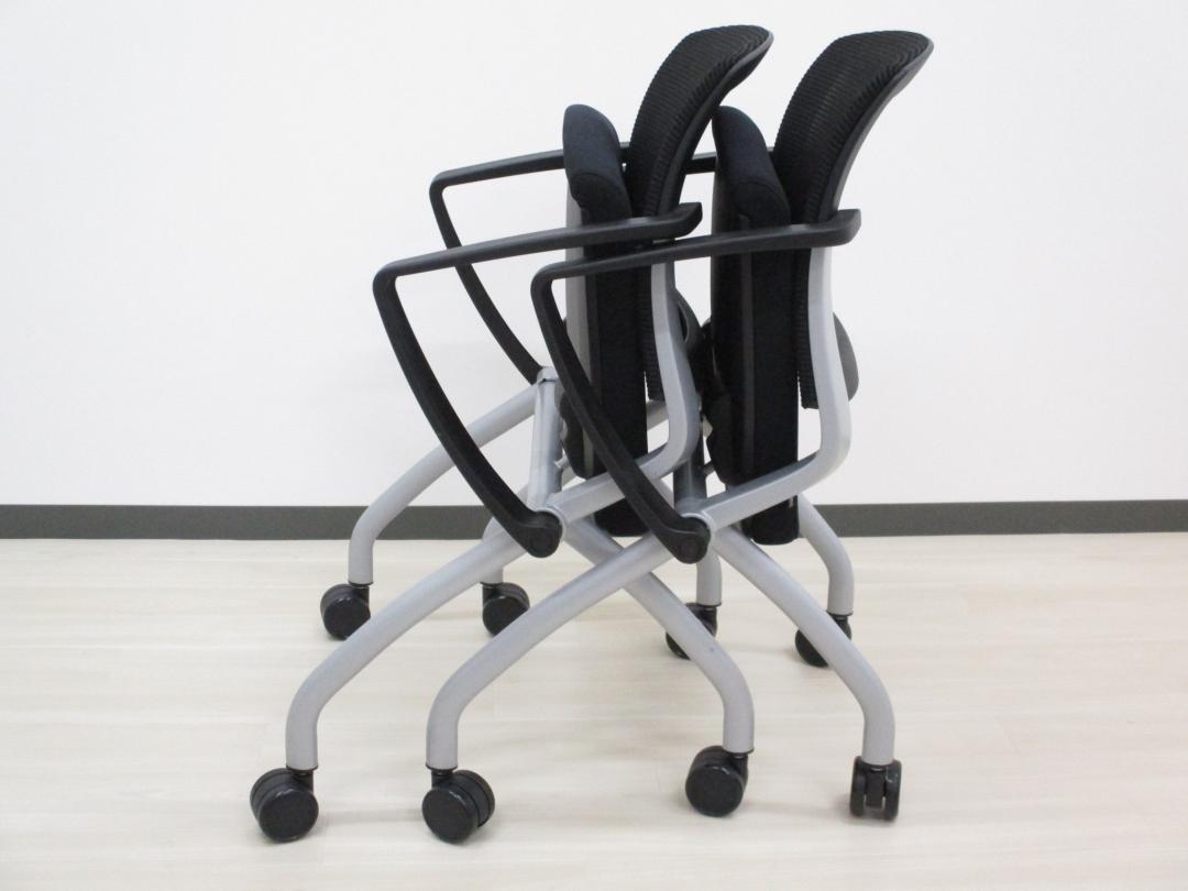 ・座面のフォールディング機能によりスライドスタッキングが行え、