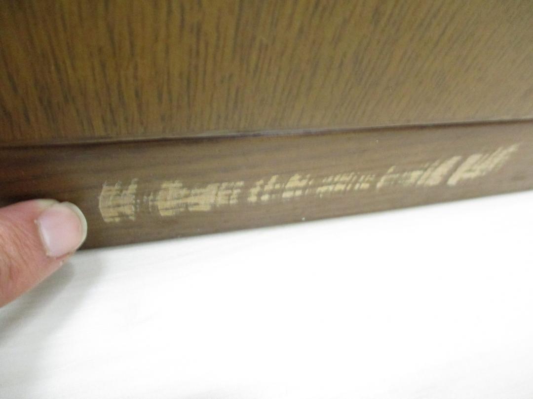 - かなり強い黄ばみ・変色が商品全体にある。(例、天板、正面、背部、サイド部分にある。)