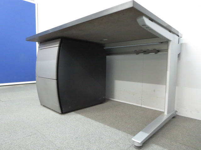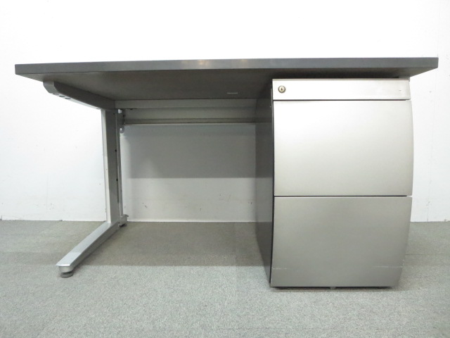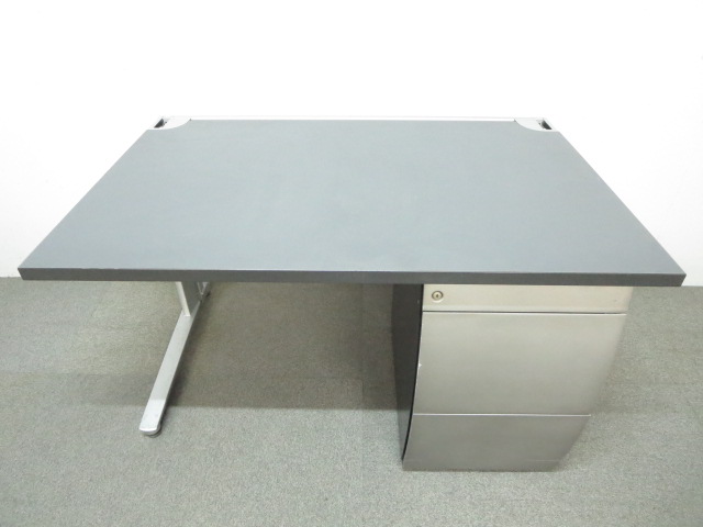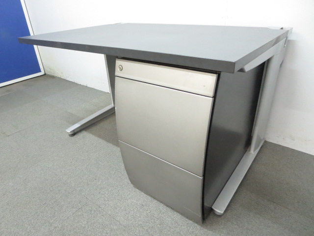 【スタイリッシュなデザイン!】■コクヨ 平机(W1200mm)+3段ワゴンセット【ブラック&シルバーカラー】- 川崎店