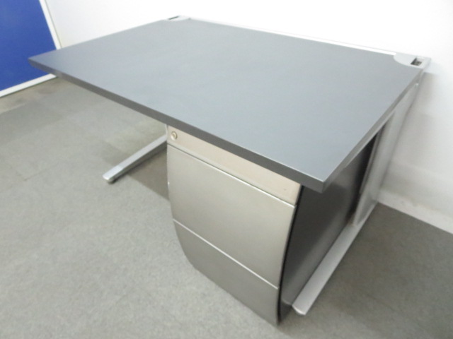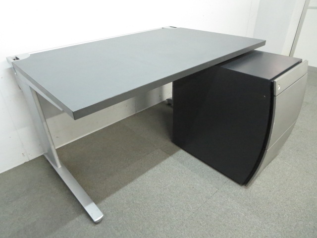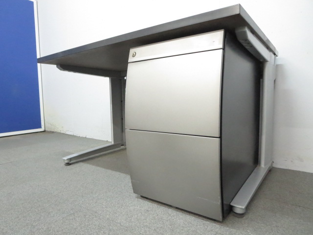 ブラックとシルバーの組み合わせの平デスク&ワゴンセットです。
