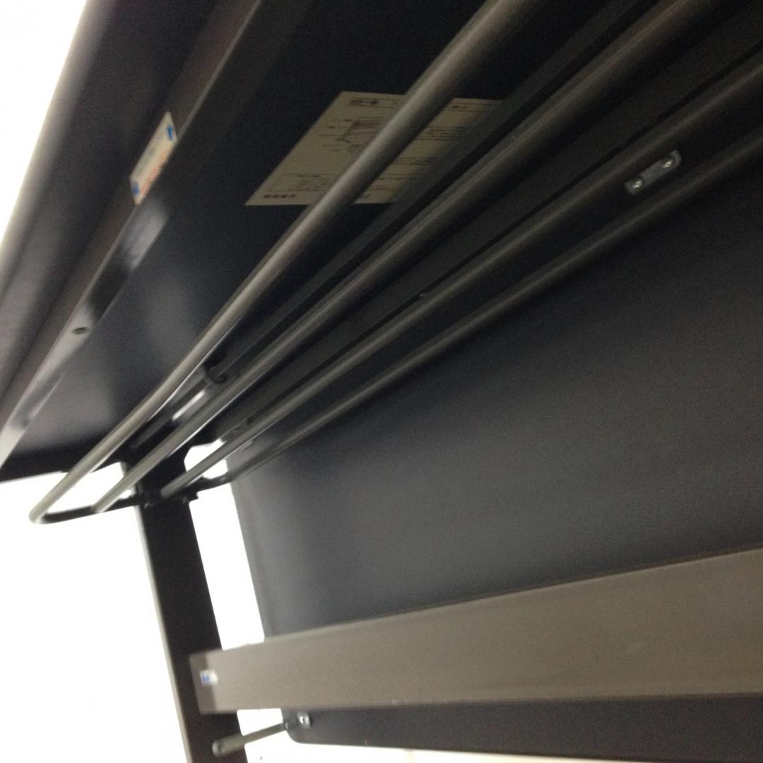 - 一部不具合あり天板歪み、アジャスター無し、キャスター使用不可ようなそのテーブルの本来の効用を果たすための機能以外の一部が使用不可な状態。(例、キャスターロッ ク機能使用不可、棚板無し等がある。)