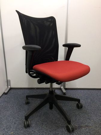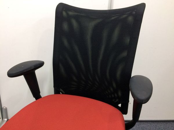 【値下げ】【イトーキ製】プラオα(PRAOα) 固定肘 背面:【メッシュ】(ブラック)座面:バーミリオン- 名古屋本店