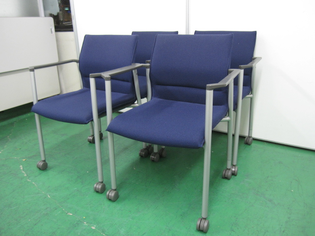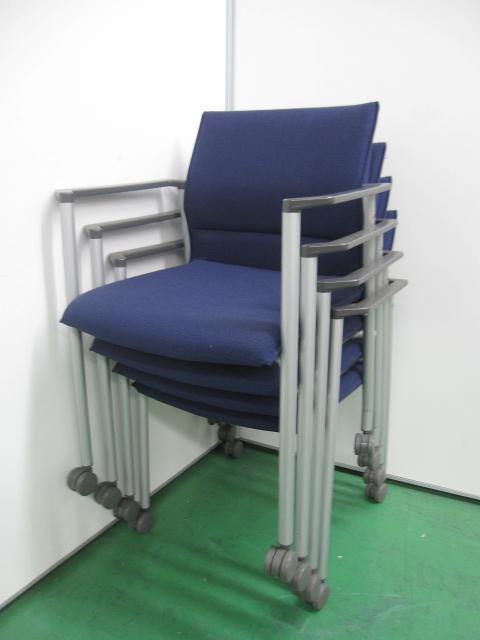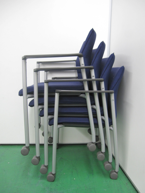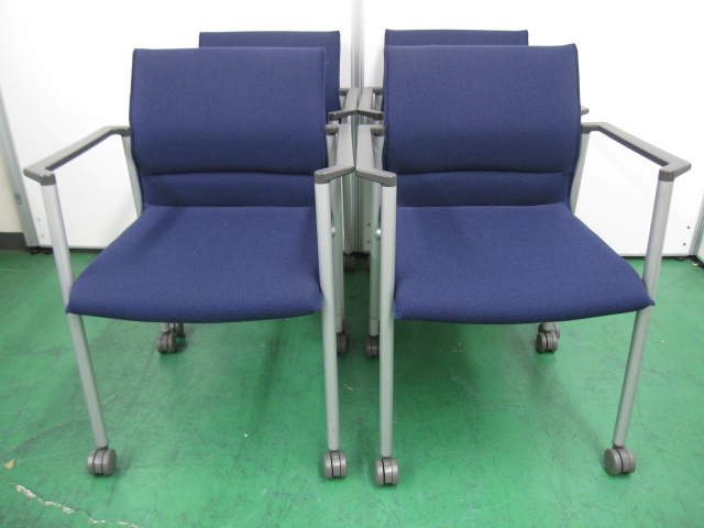 【4脚セット】カラーオフィスに良くあうブルー!! ライオン製 スタッキングチェア- 品川・三田店