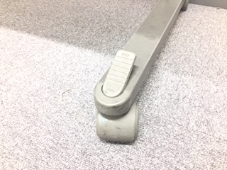 - 一部不具合あり天板歪み、アジャスター無し、キャスター使用不可ようなそのテーブルの本来の効用を果たすための機能以外の一部が使用不可な状態。(例、キャスターロッ ク機能使用不可、棚板無し等がある。)