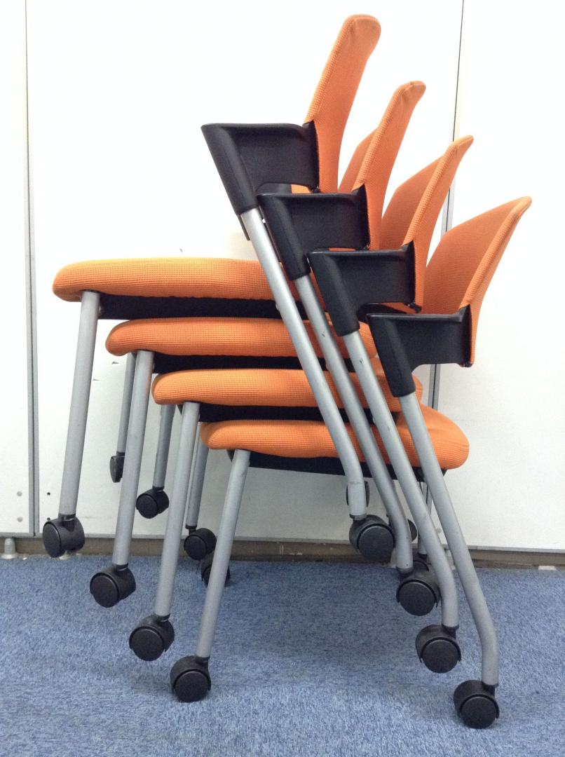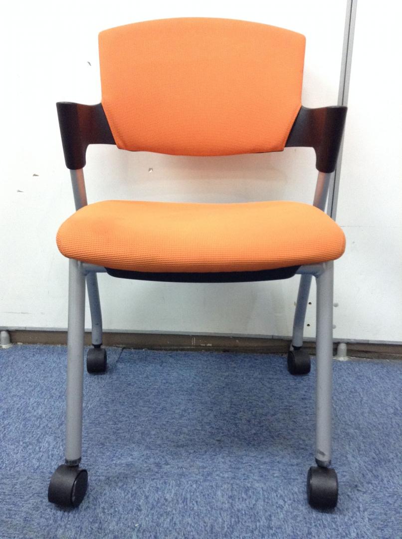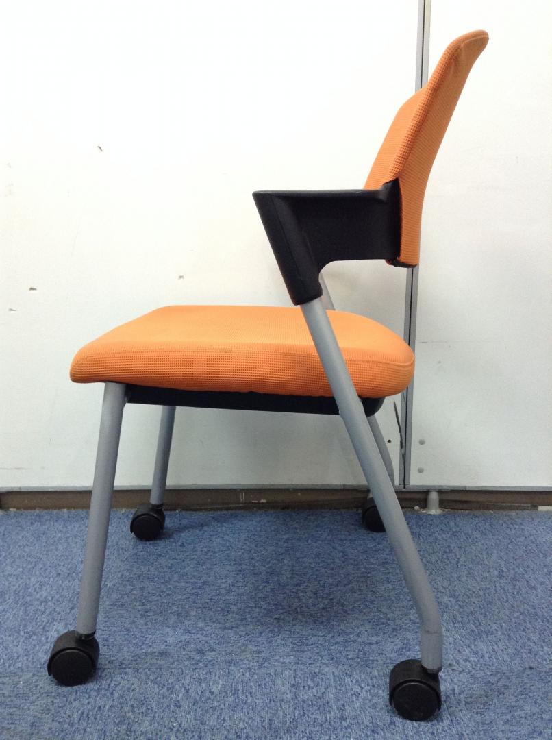 【シンプルスマートなスタッキングチェア!】■コクヨ(KOKUYO) プロッティ(Protty)チェア スタッキングチェア ミーティングチェア ■肘付き キャスター付き ■オレンジ【2505】弊社使用欄【A01018053】