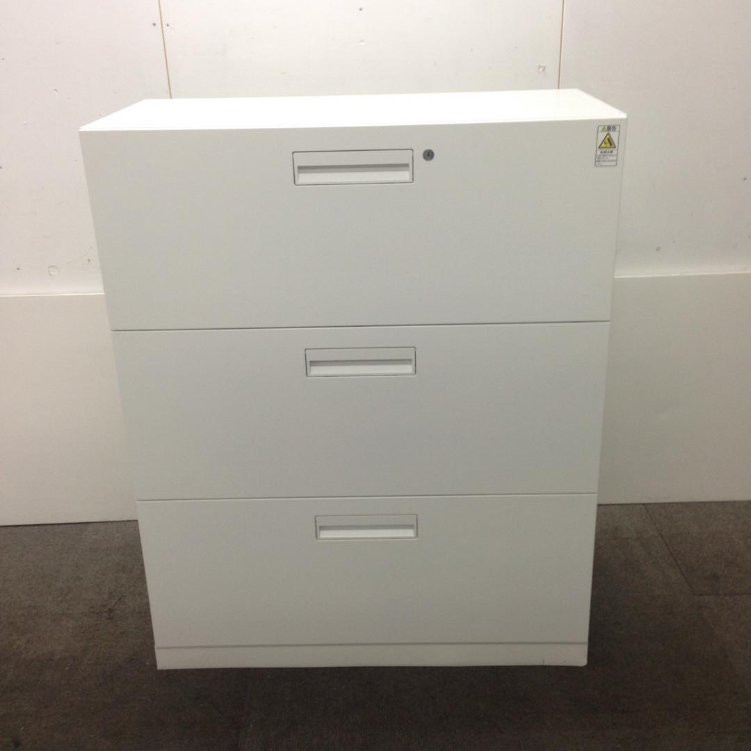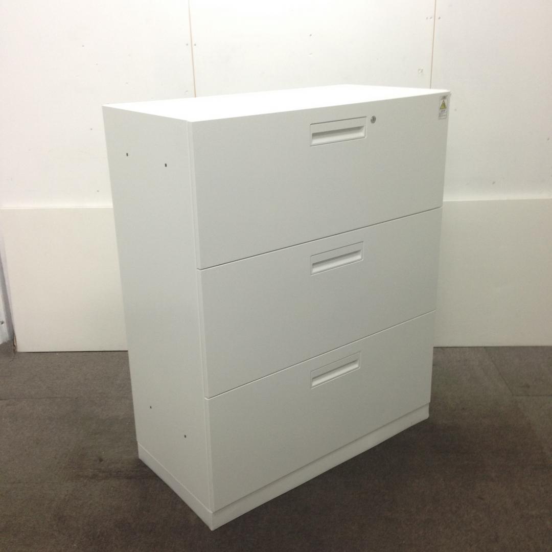 【4台入荷】【収納力抜群の3段ラテラル書庫!A4書類が大量に収納可能!】■コクヨ(KOKUYO)製 エディア(EDIA)シリーズ 3段ラテラル ローキャビネット ■天板/ベース付き ■ホワイト ■シリンダー錠