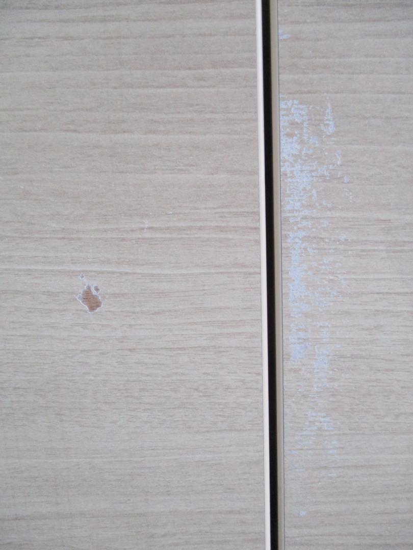 - あり黄ばみ・変色が広い範囲にうっすらある、または濃い黄ばみ・変色が一部ある。(例、天板、正面、背部、サイド部分にある。)