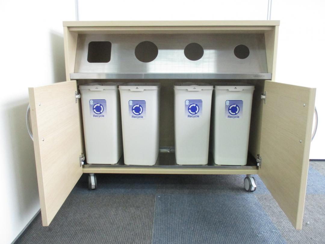 【希少な4個口のごみ箱!】オカムラ製のアルトカフェシリーズ!【ナチュラルカラー!】- 千葉店