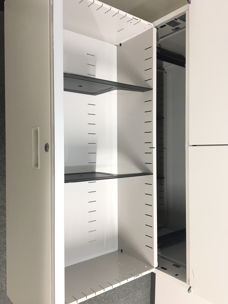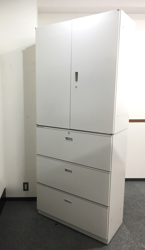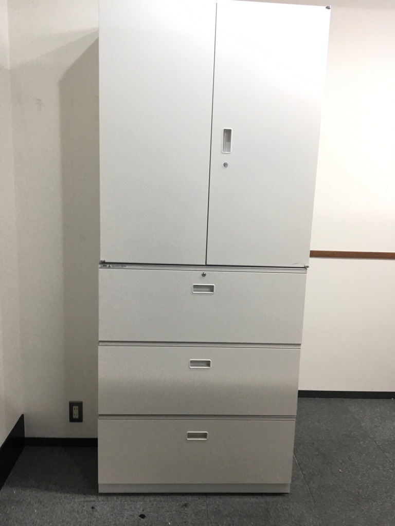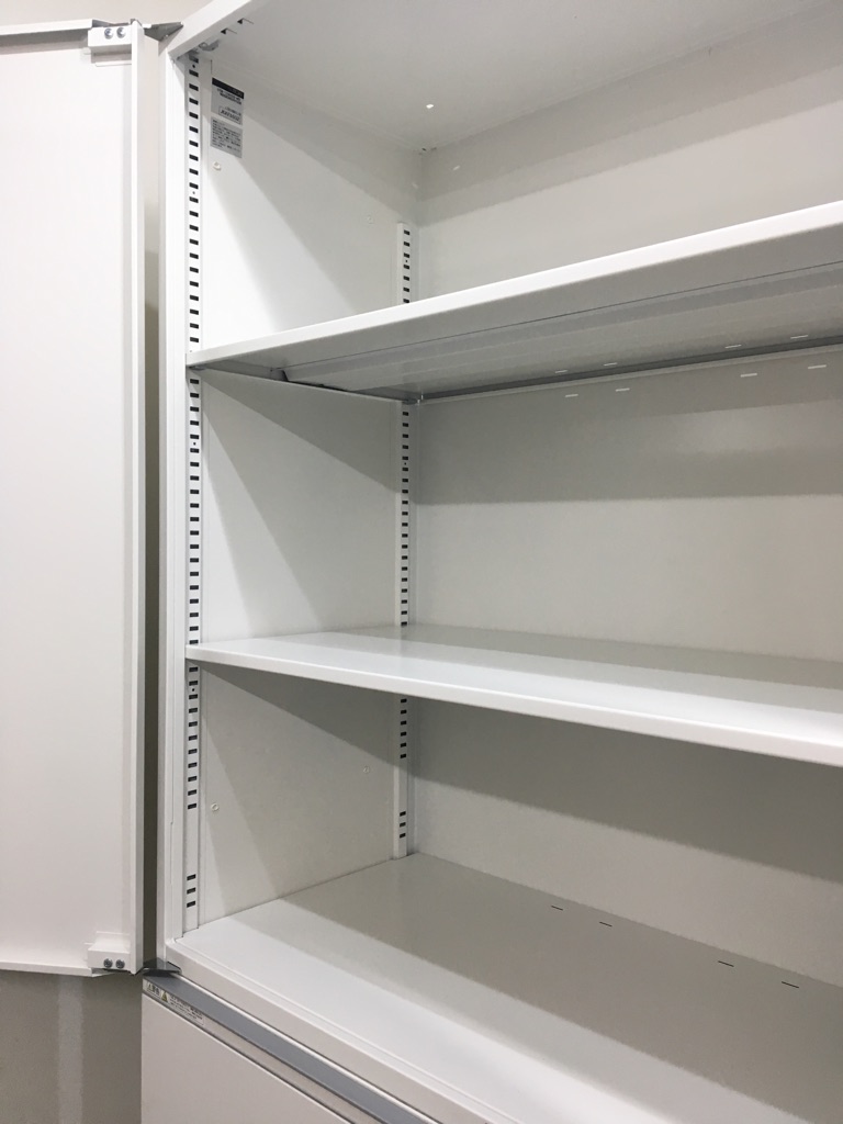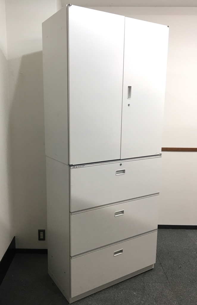 両開き書庫と3段ラテラルのWH色上下セットが入荷!