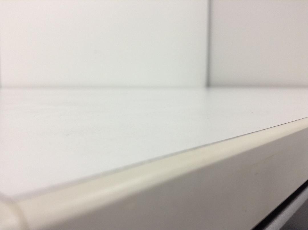 - あり黄ばみ・変色が広い範囲にうっすらある、または濃い黄ばみ・変色が一部ある。(例、天板、幕板、棚板、サイド部分、脚部等にある。)