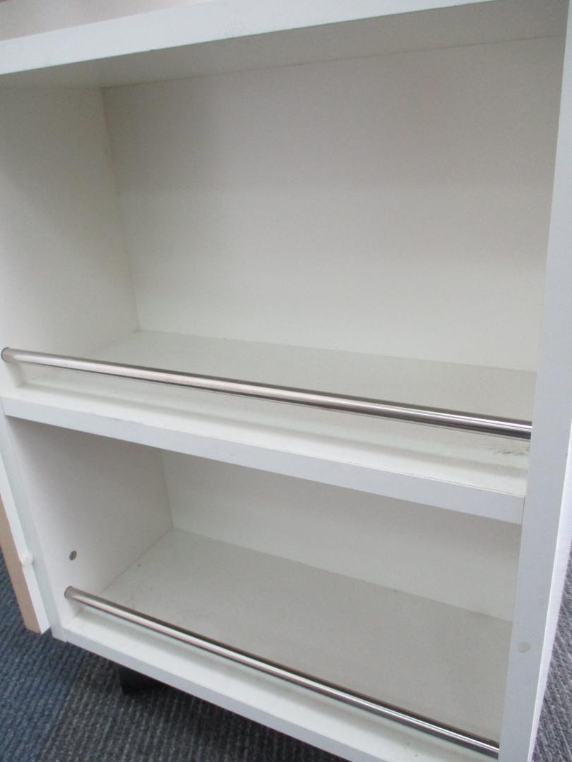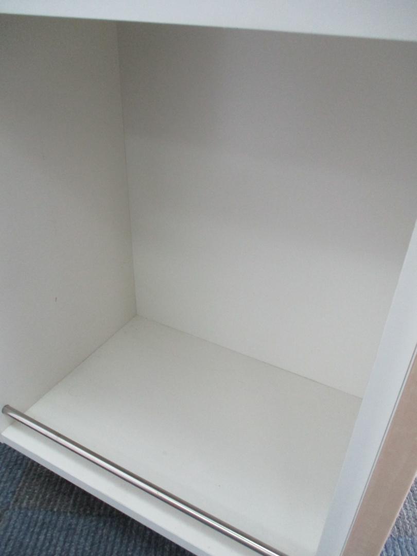 - 一部不具合ありそ引出の開閉不可、施錠不可、棚板無しといったの書庫の本来の効用を果たすための機能以外の一部が使用不可(例、扉、引出の開閉がしづらいなどがある。 )