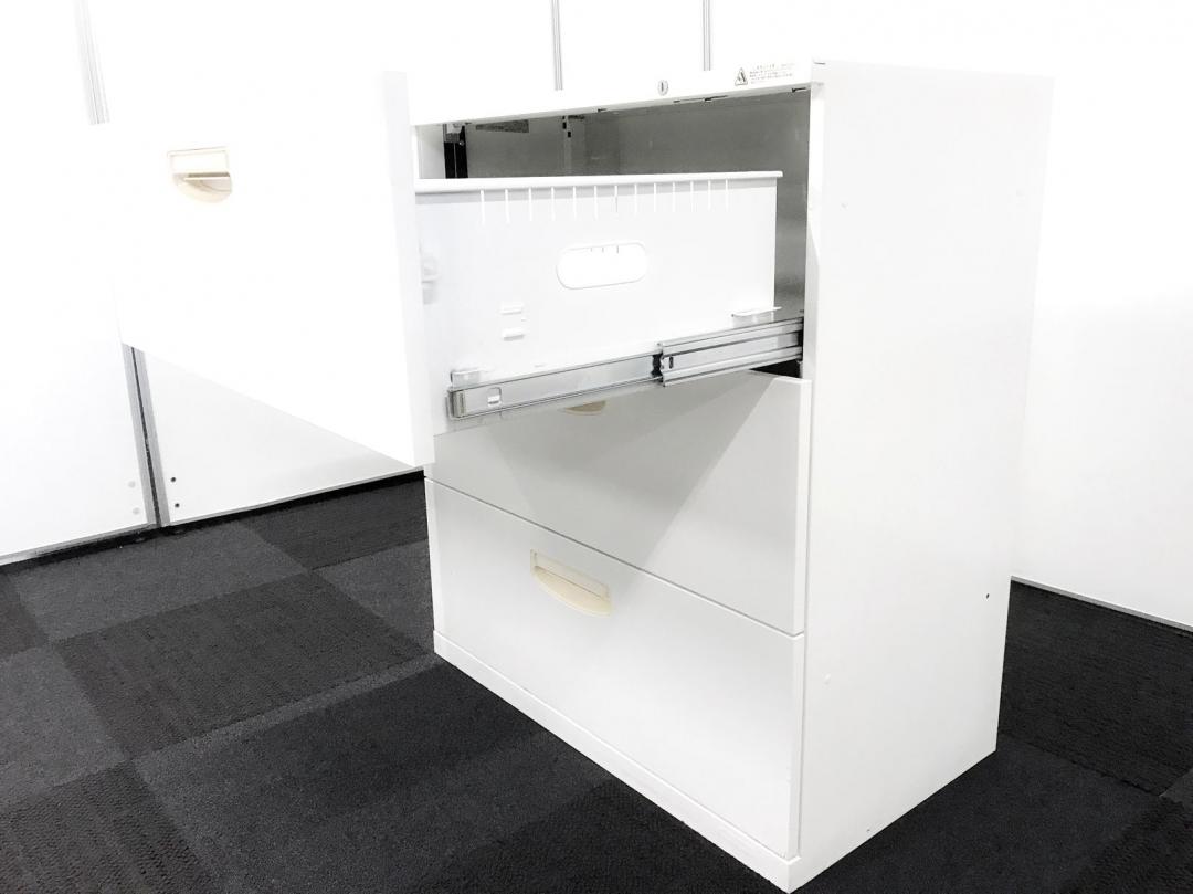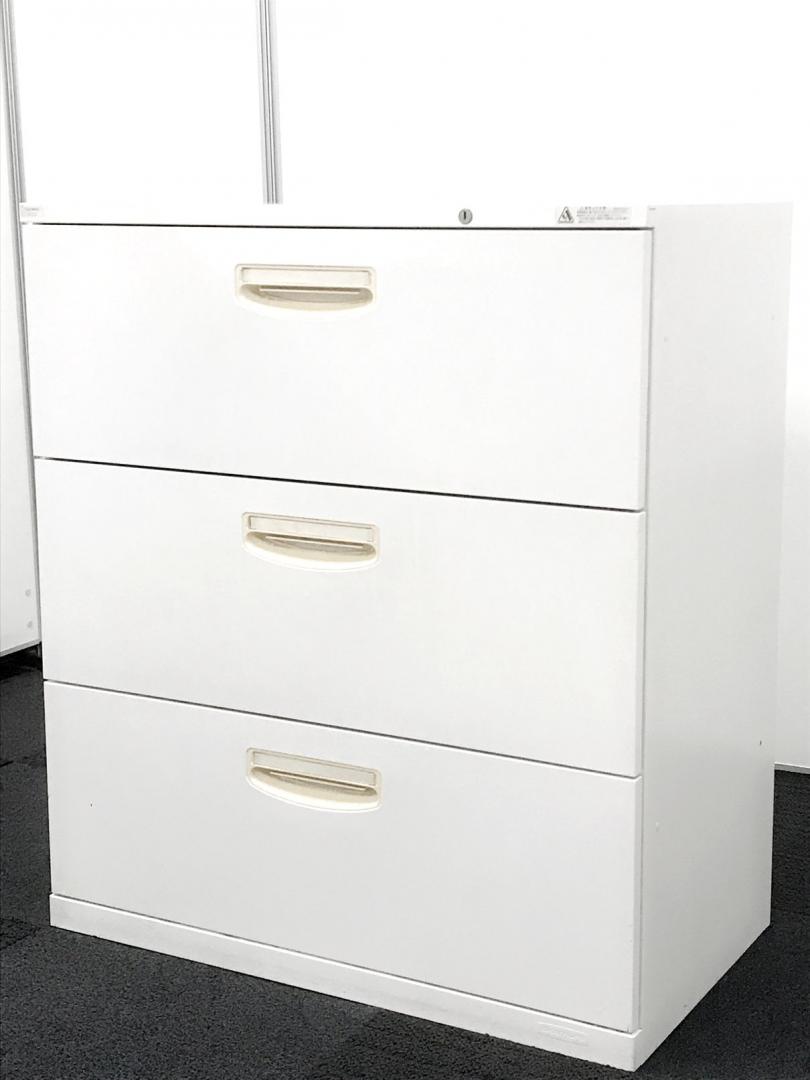 【A00981630】オカムラ 3段ラテラル/引き出し キャビネット ホワイト SA デュオライン【在庫入替セール】【IB】