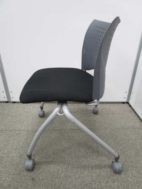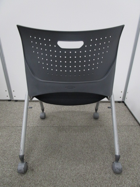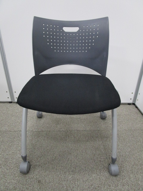 ◆近年オフィス家具市場の中で人気のブラックカラー◆スタック機能付き、キャスター付きで移動も収納も楽々です!