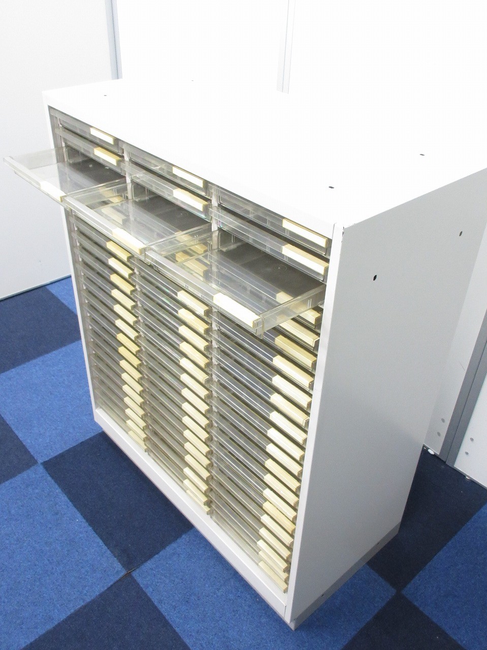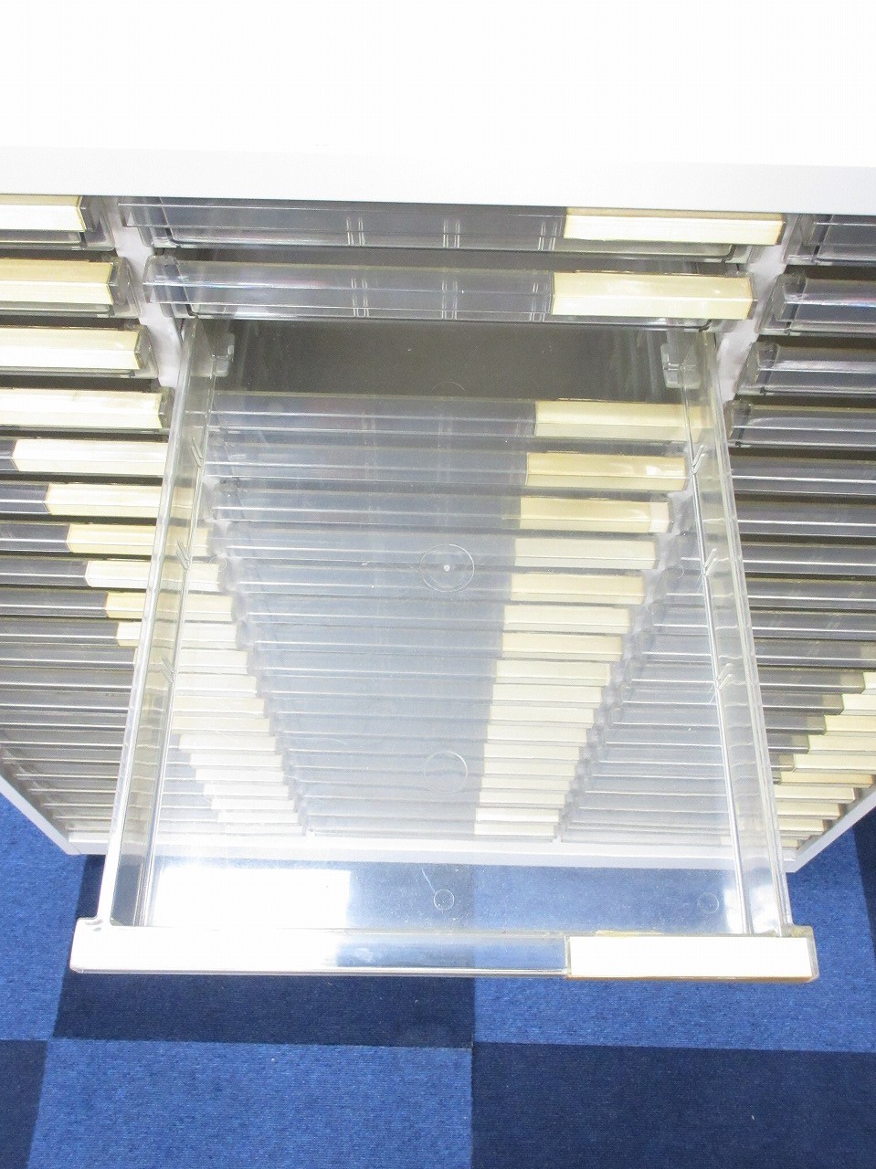 【書類分けに最適の希少価値の高いクリスタルトレイが入荷!!】縦21段×横3段の計63個の細かい収納スペースがあります!!【1台限定!】- 在庫数